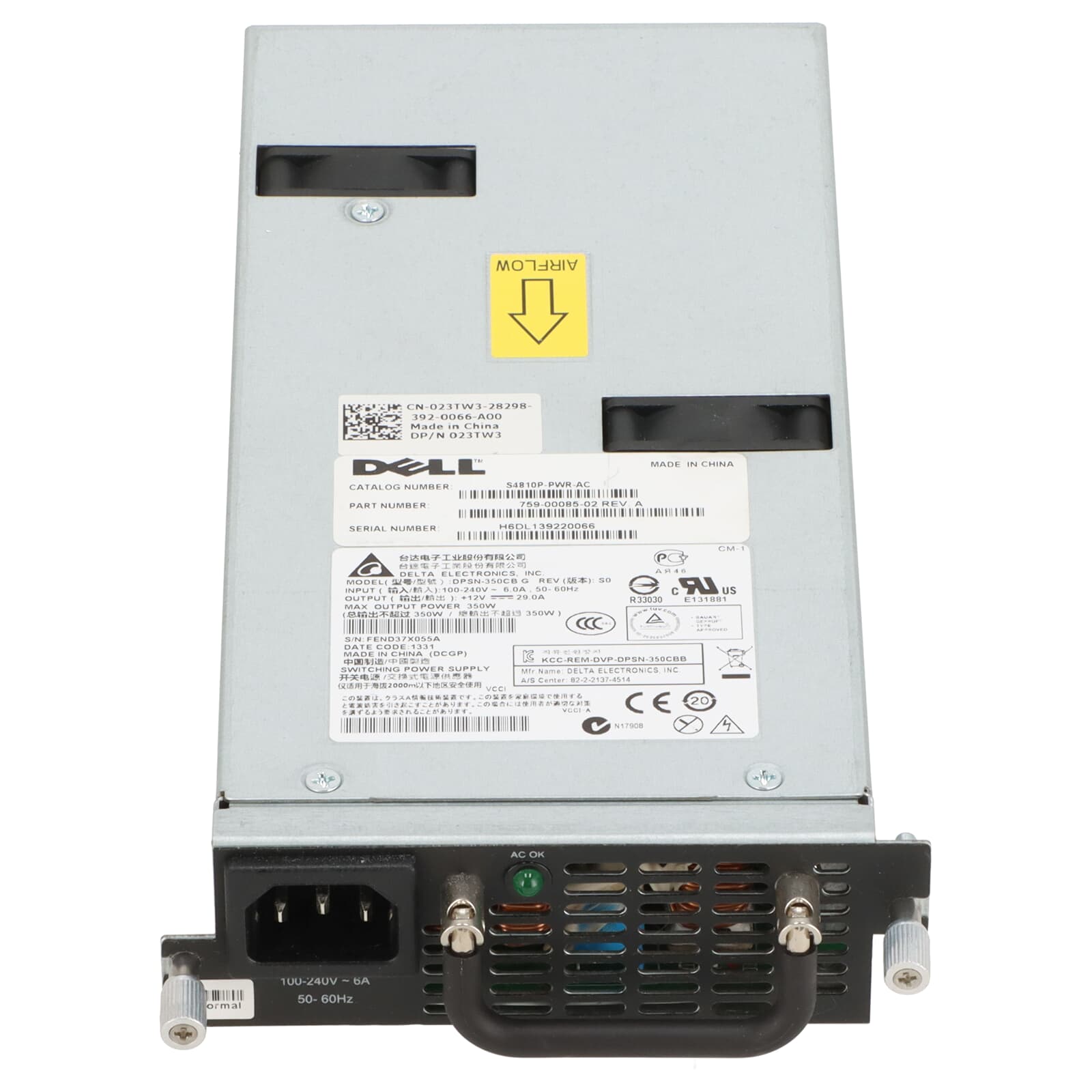 Dell 350W Switch Power Supply Force10 S4810P - 23TW3 S4810P-PWR-AC in stock 1 195.00 € incl. VAT, free shipping within GER Condition refurbished Item ID: 50024103 Remove item comparison compare item Wishlist Add to cart Description NoteSpecial featureFront to back airflowTechnical specificationsDevice typeSwitch power supply unitInput voltage100-240 VFrequency limit (mains operation)50-60 HzMax. output power350 wattsConnectionsIEC 60320 C141 Compatibility Force10 S4810PWe will be happy to check other compatibilities for you!