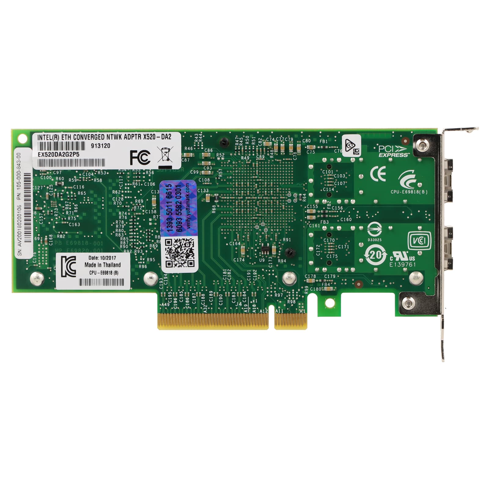 Dell EMC X520-DA2 2-Port Network Adapter 10GbE SFP+ PCI-E x8 LP Isilon Gen6 - 105-000-843-00