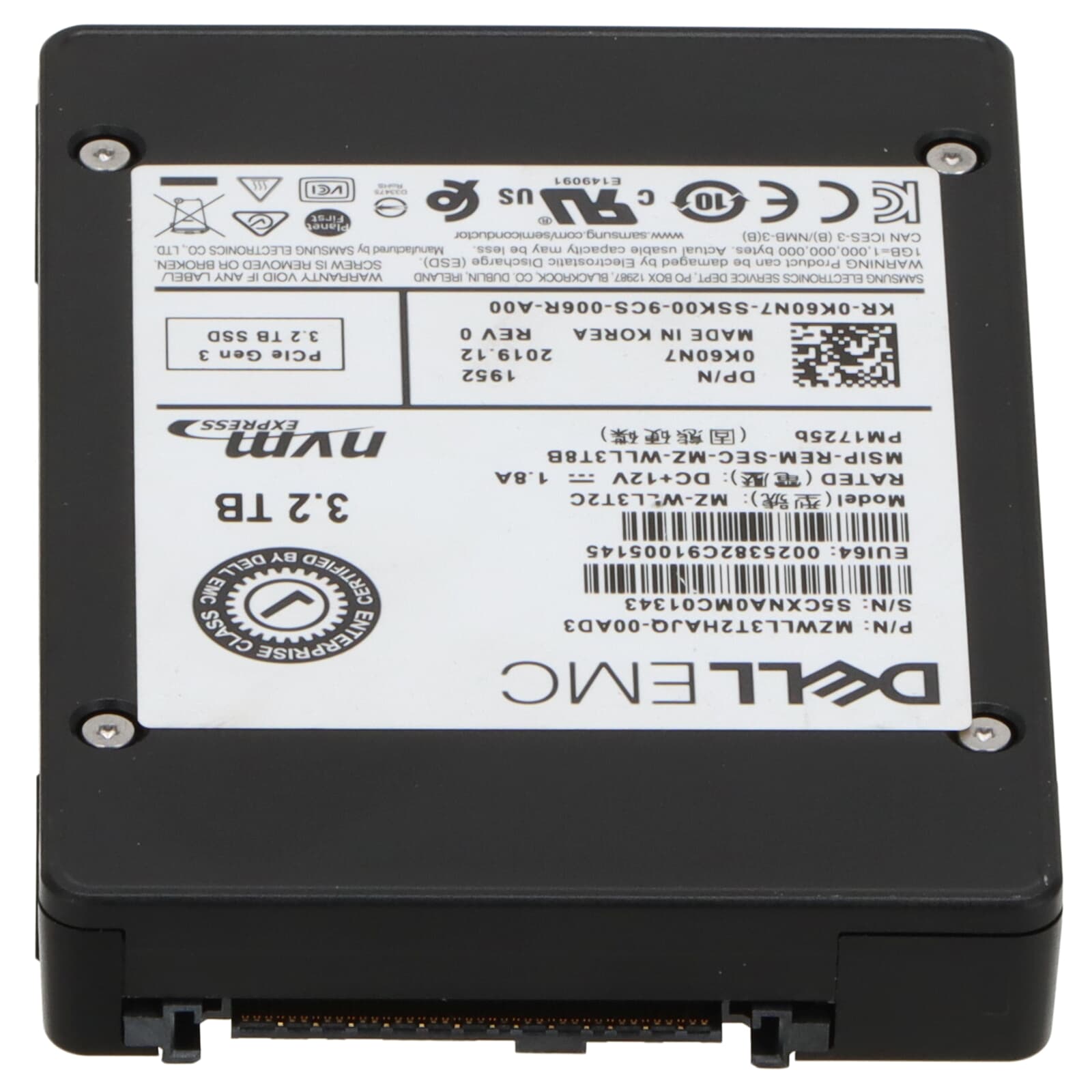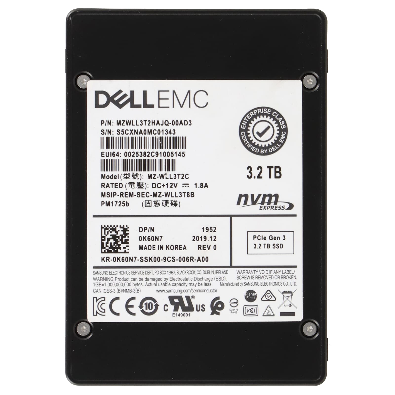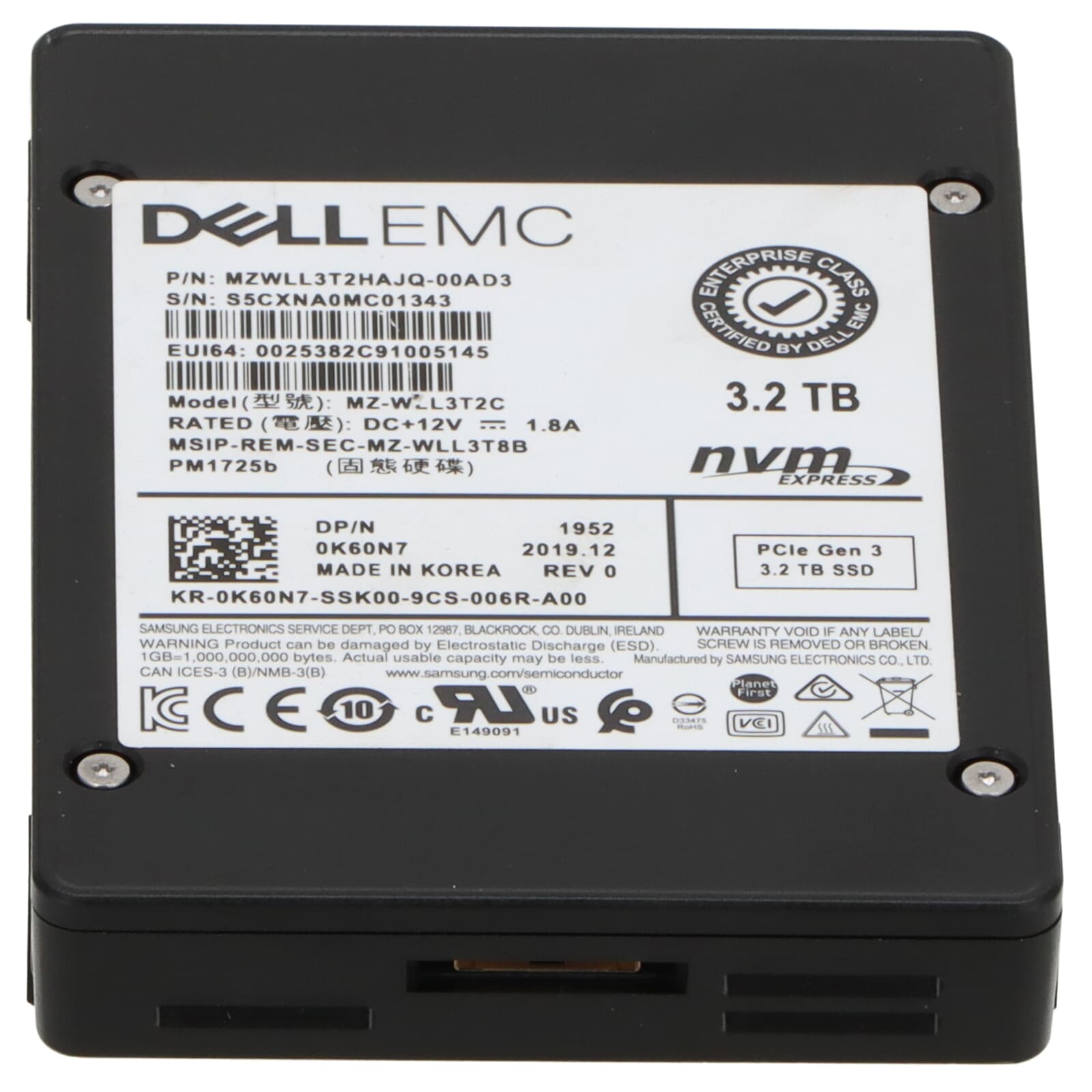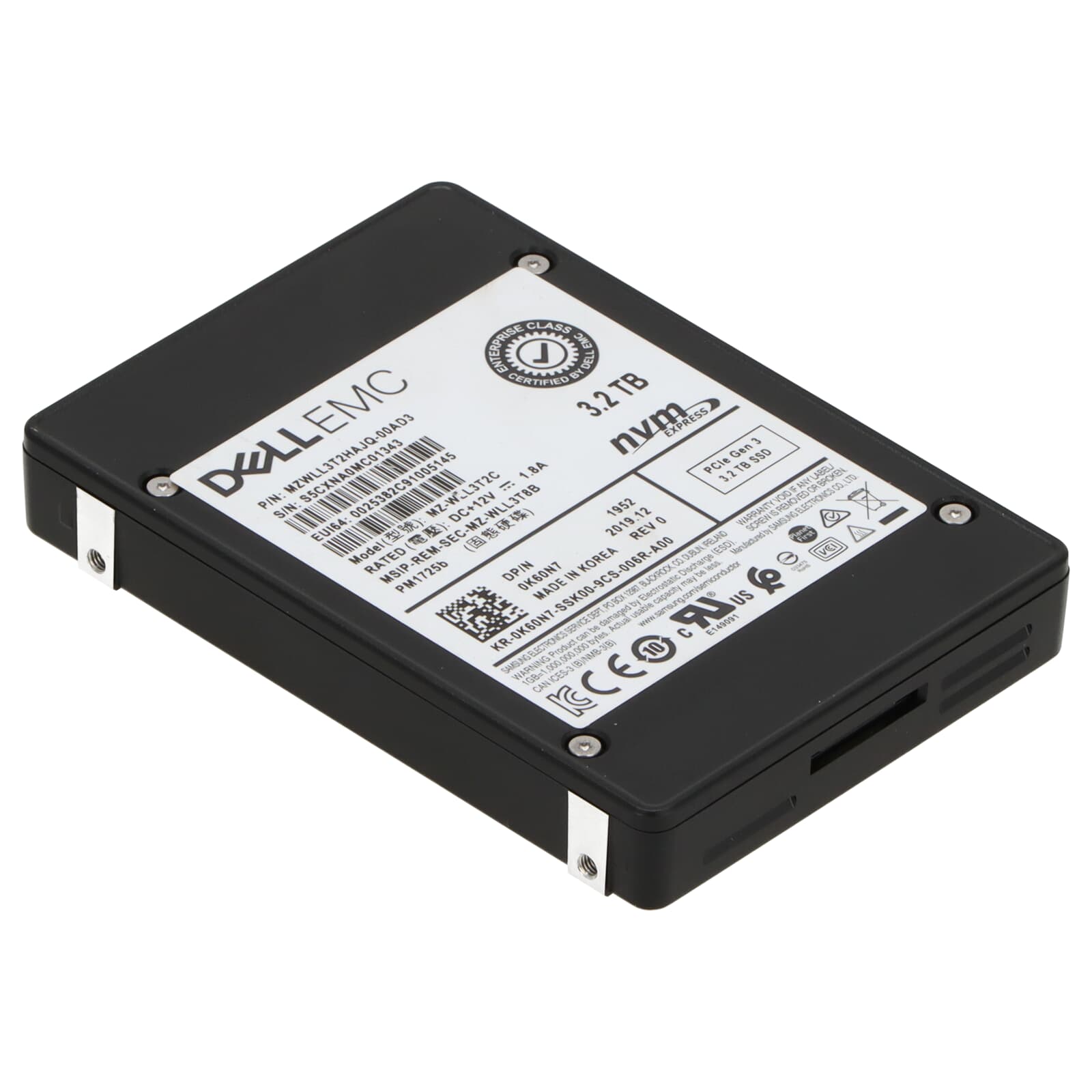 Dell PM1725b 3.2TB U.2 PCI-e x4 Gen3 2.5" SFF NVMe SSD - K60N7 MZ-WLL3T2C