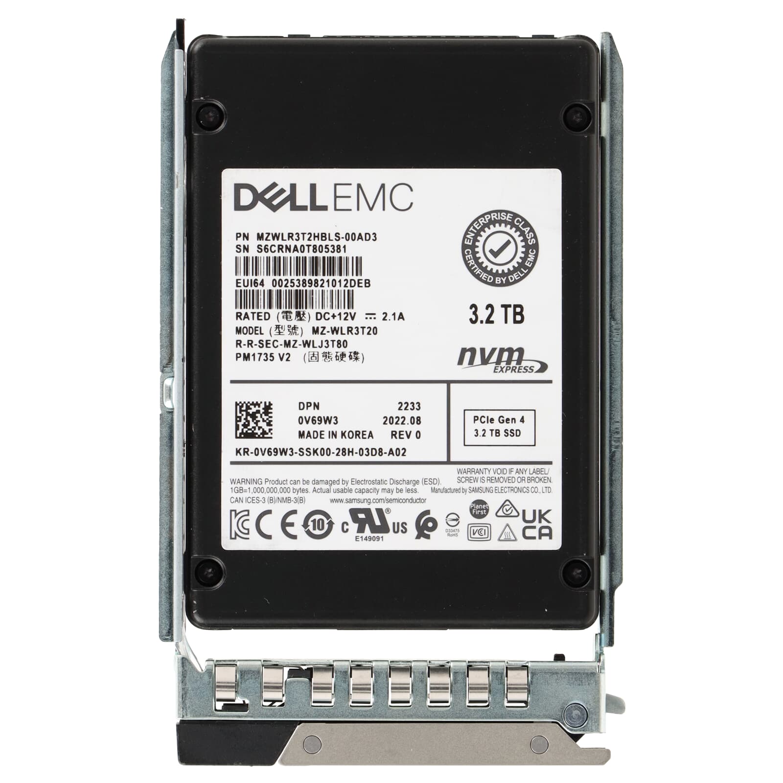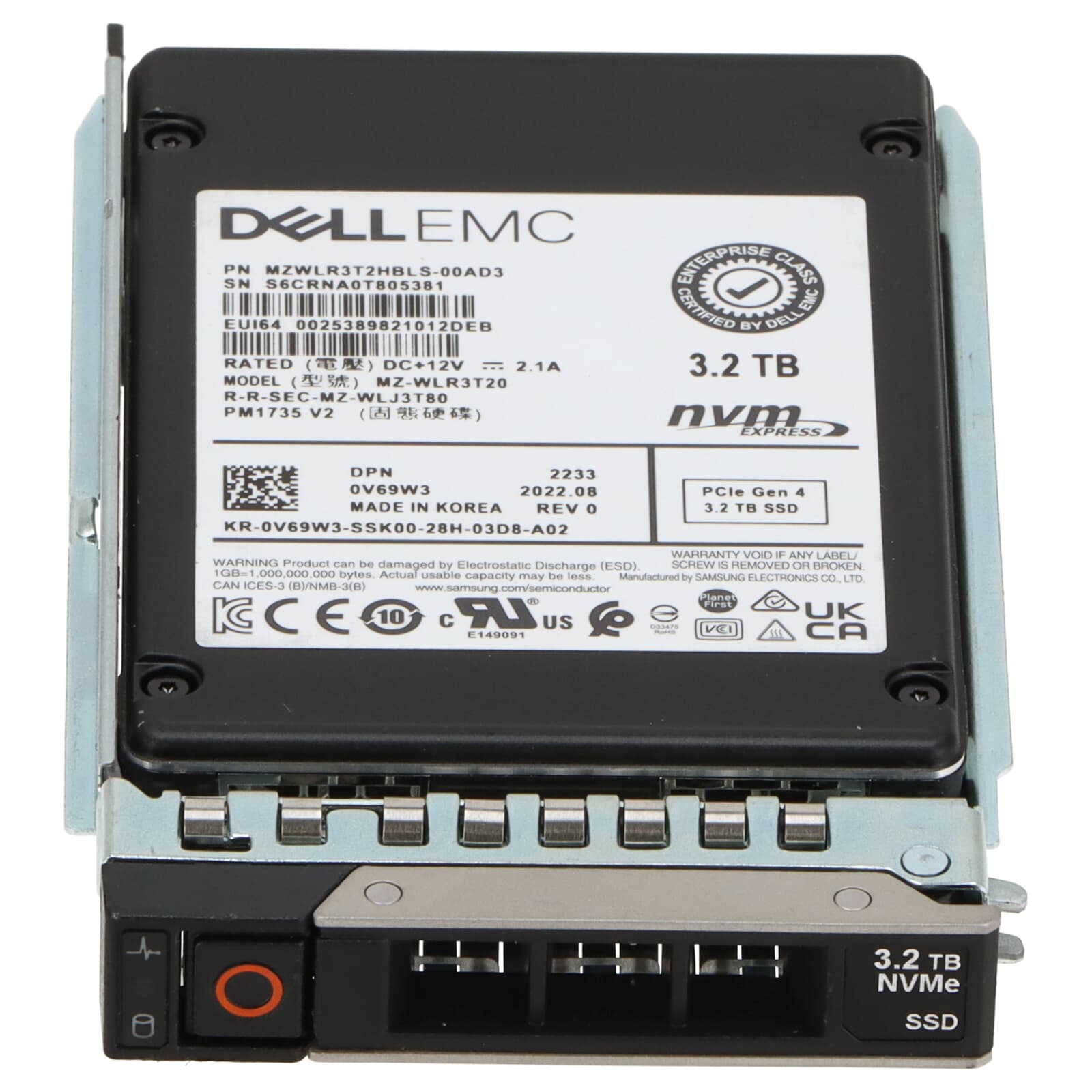 Dell PM1735 V2 3.2TB PCI-e x4 Gen4 MU 2.5" SFF NVMe SSD - V69W3 MZ-WLR3T20