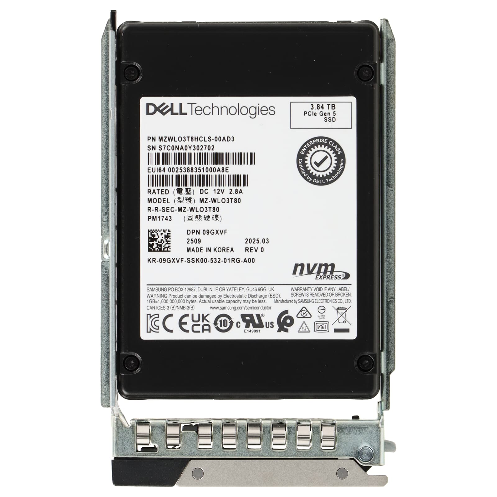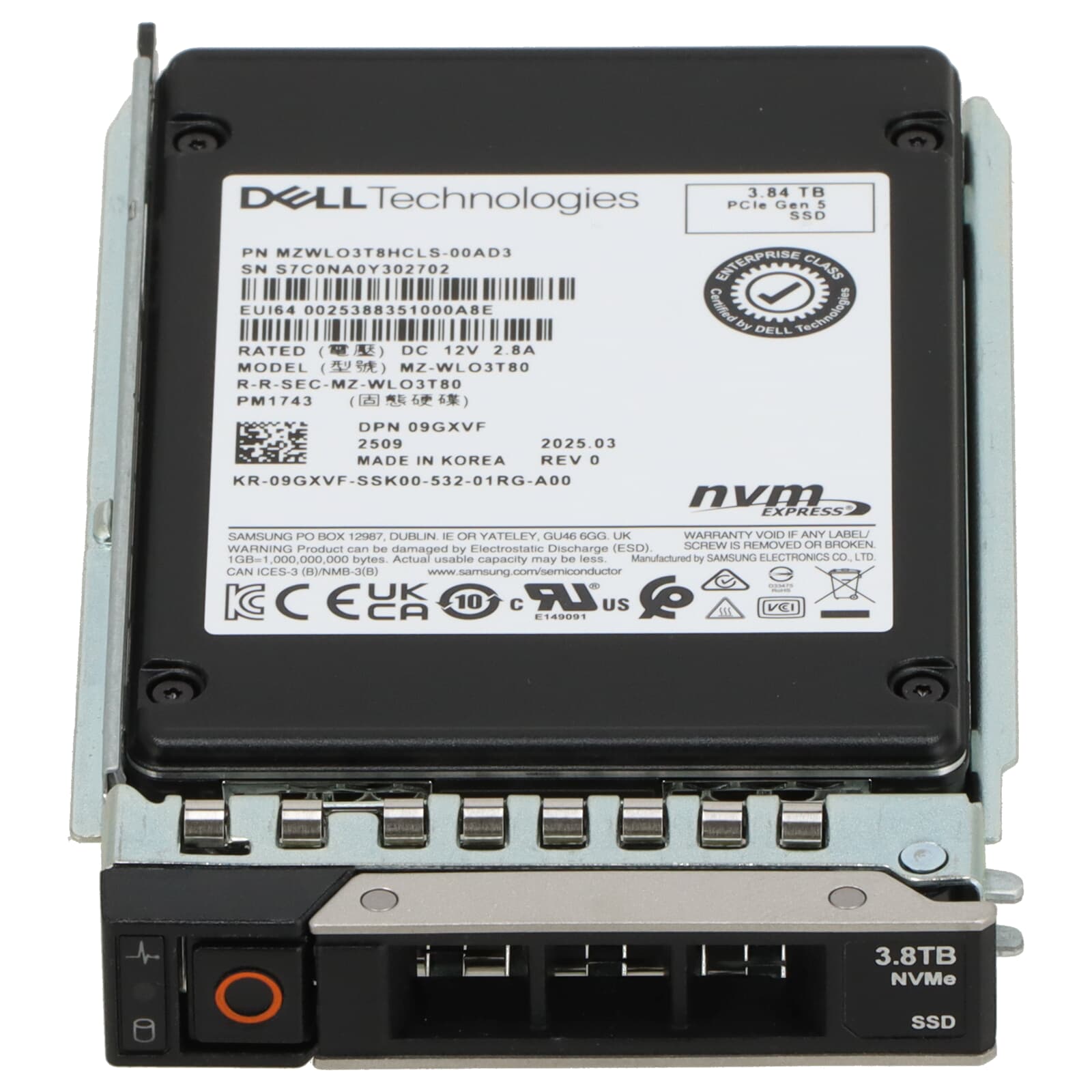 Dell PM1743 3.84TB PCIe 5.0 x4 NVME SSD U.3 2.5" SFF - 9GXVF MZWLO3T8HCLS-00AD3