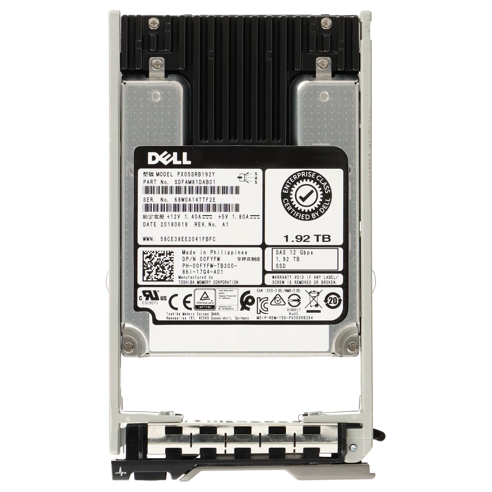 Dell PX05SRB 1.92TB 12G 2.5" SFF RI SAS-SSD R730 - 0FYFW PX05SRB192Y