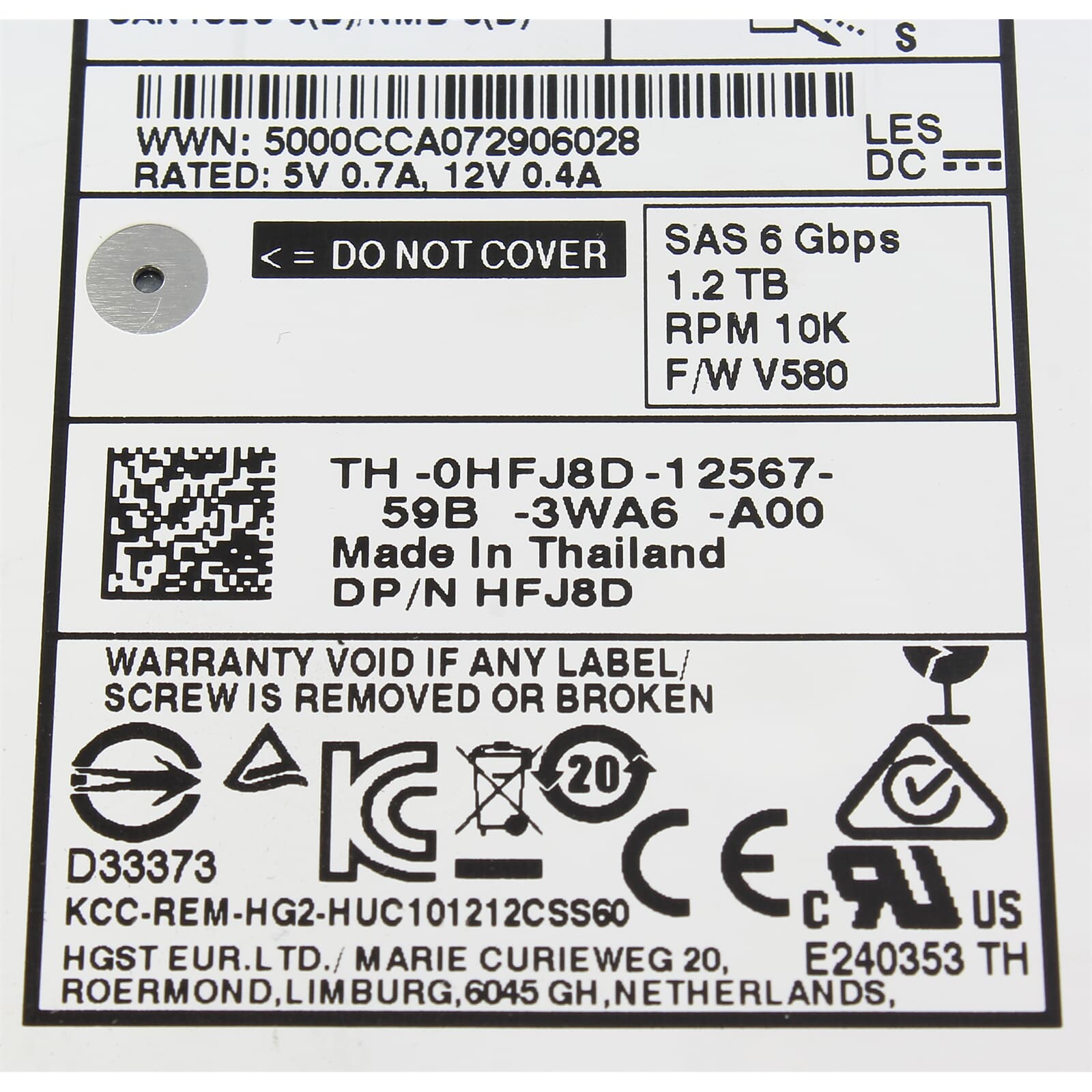 Dell SAS Hard Drive 1.2TB 10k SAS 6G SFF - HFJ8D