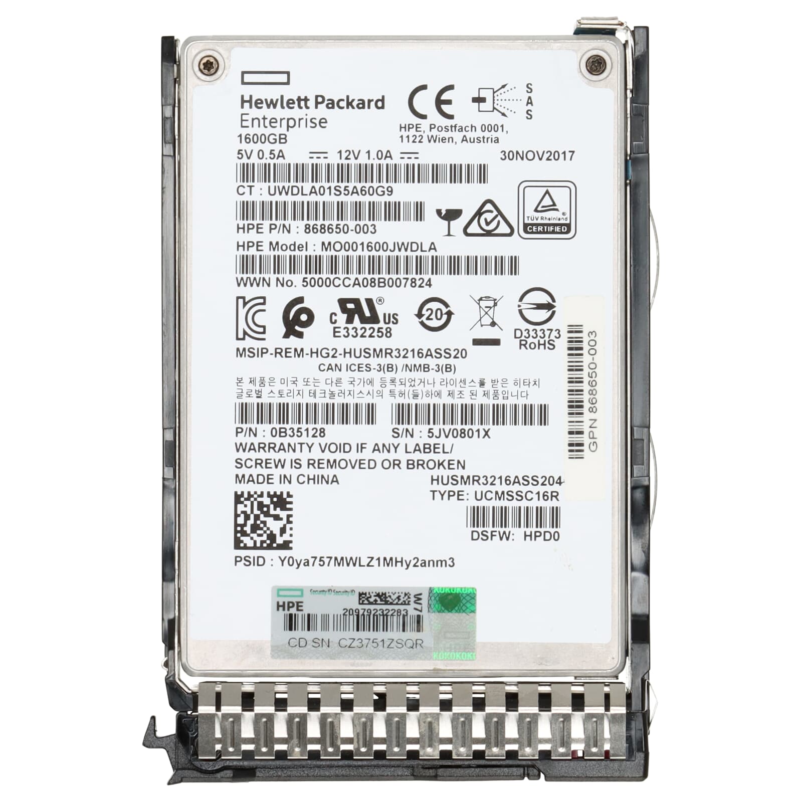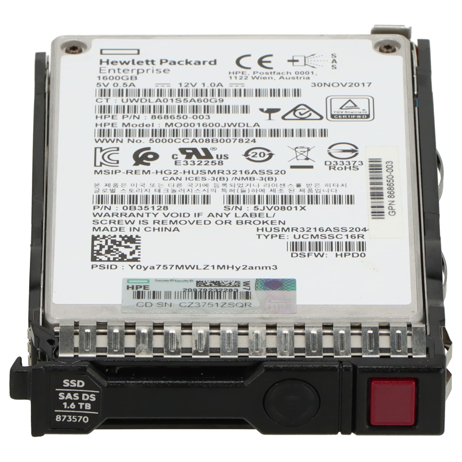 HPE SS300 1.6TB 12G MU 2.5" SFF SAS-SSD - 873570-001 873365-B21 MO001600JWDLA