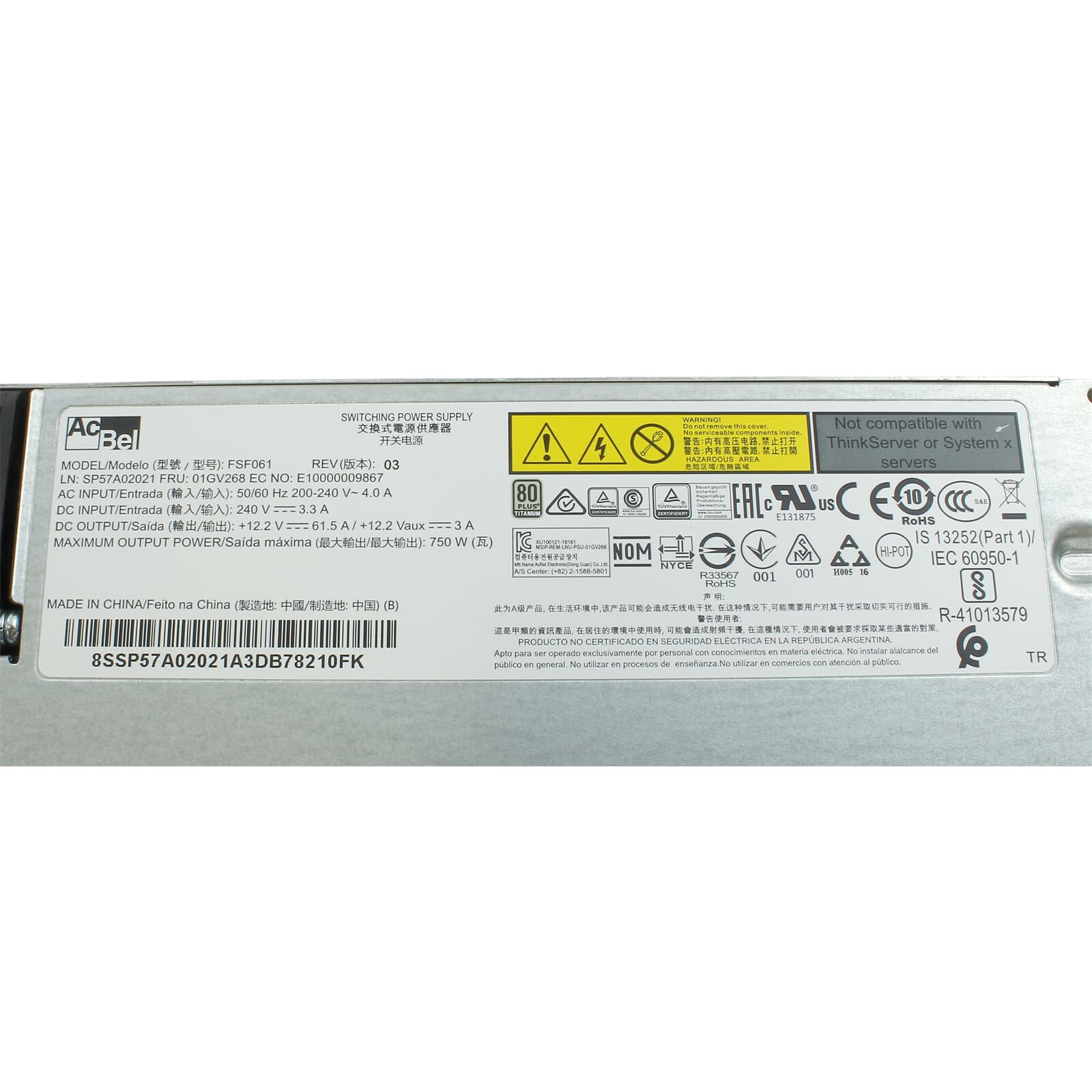 Lenovo Server Power Supply ThinkSystem SR650 750W Titanium - 01GV268