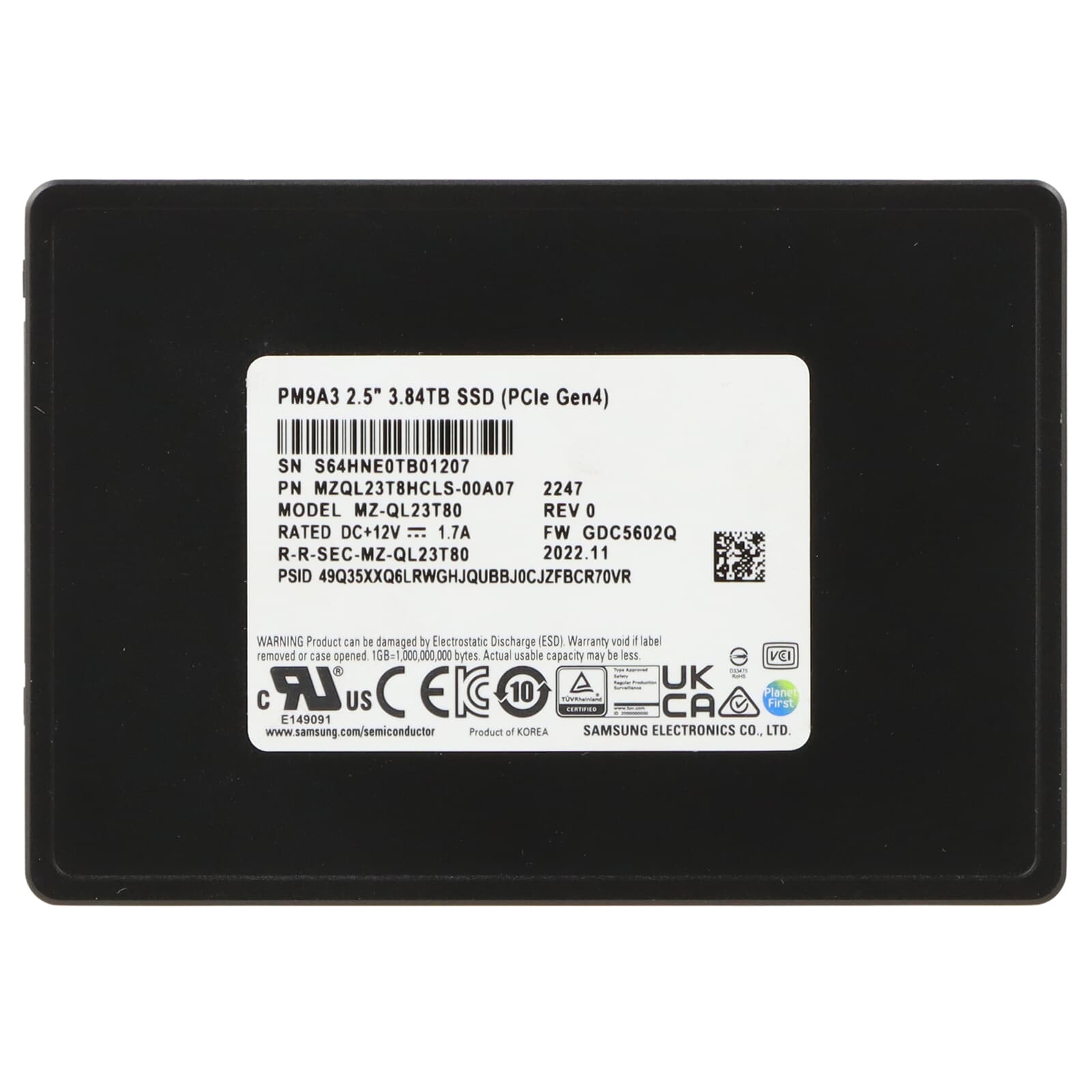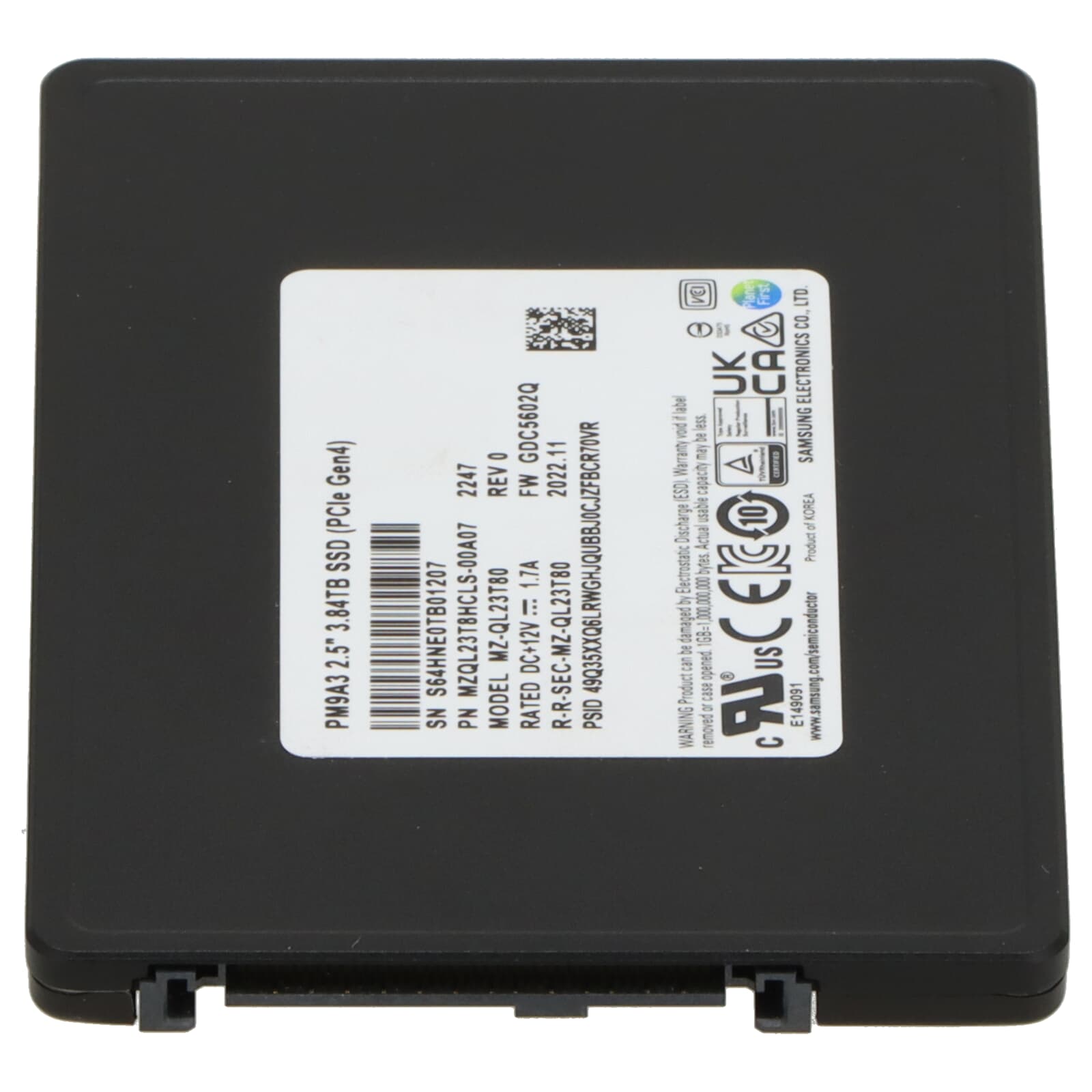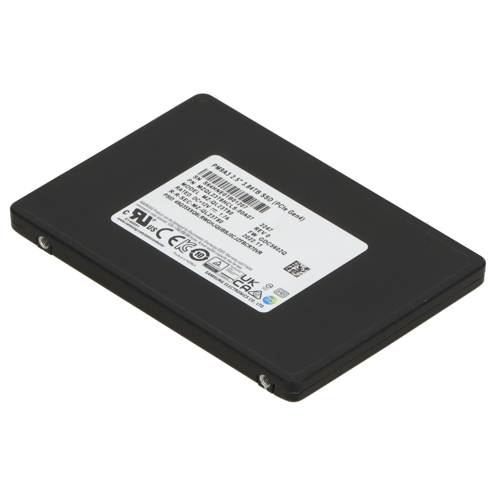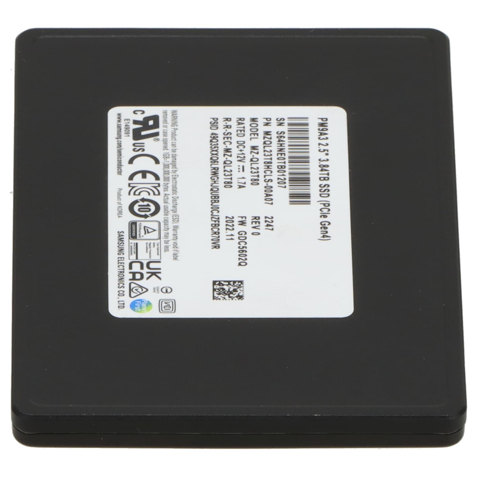 Samsung PM9A3 3.84TB PCIe 4.0 x4 NVME SSD U.2 2.5" - MZ-QL23T80 MZQL23T8HCLS-00A07