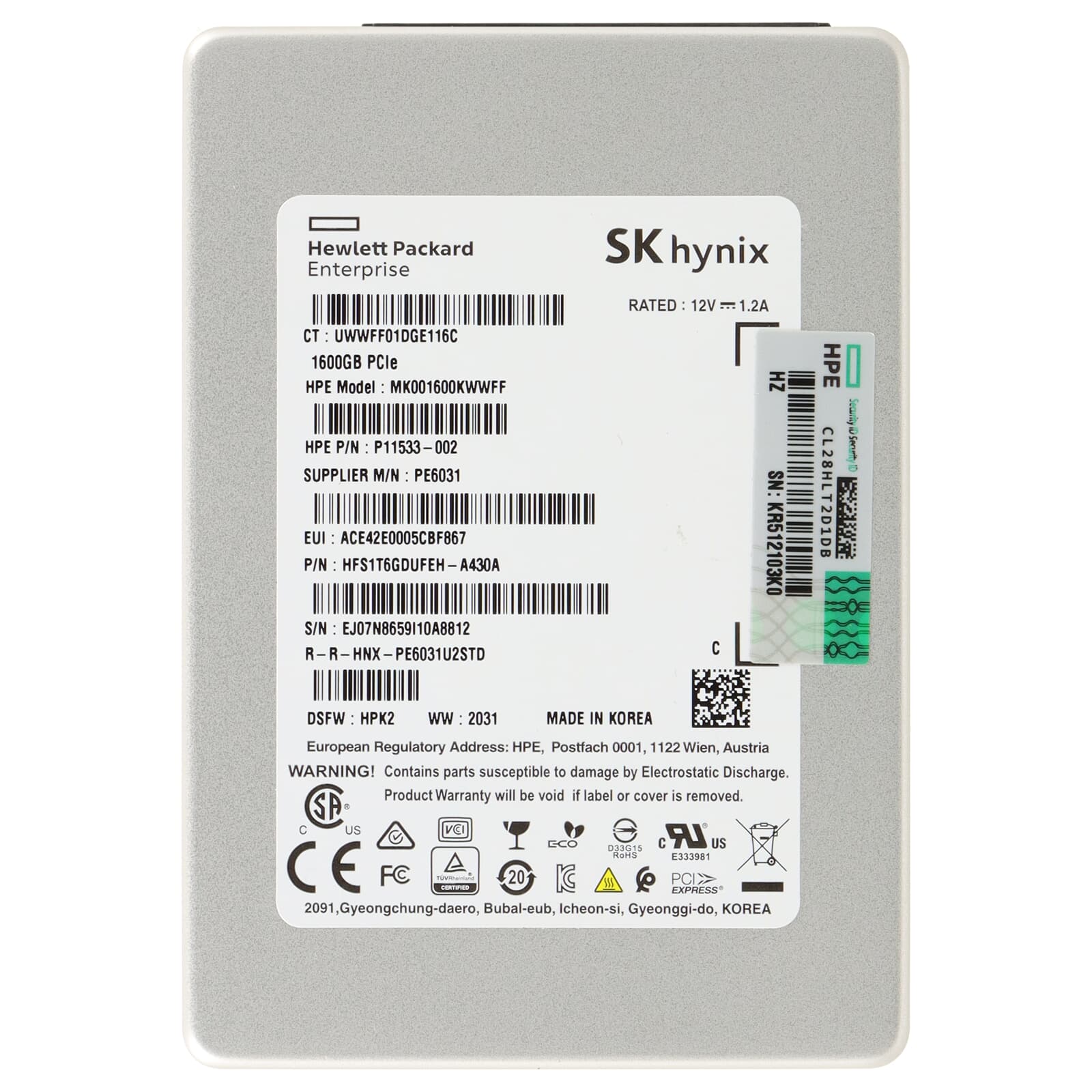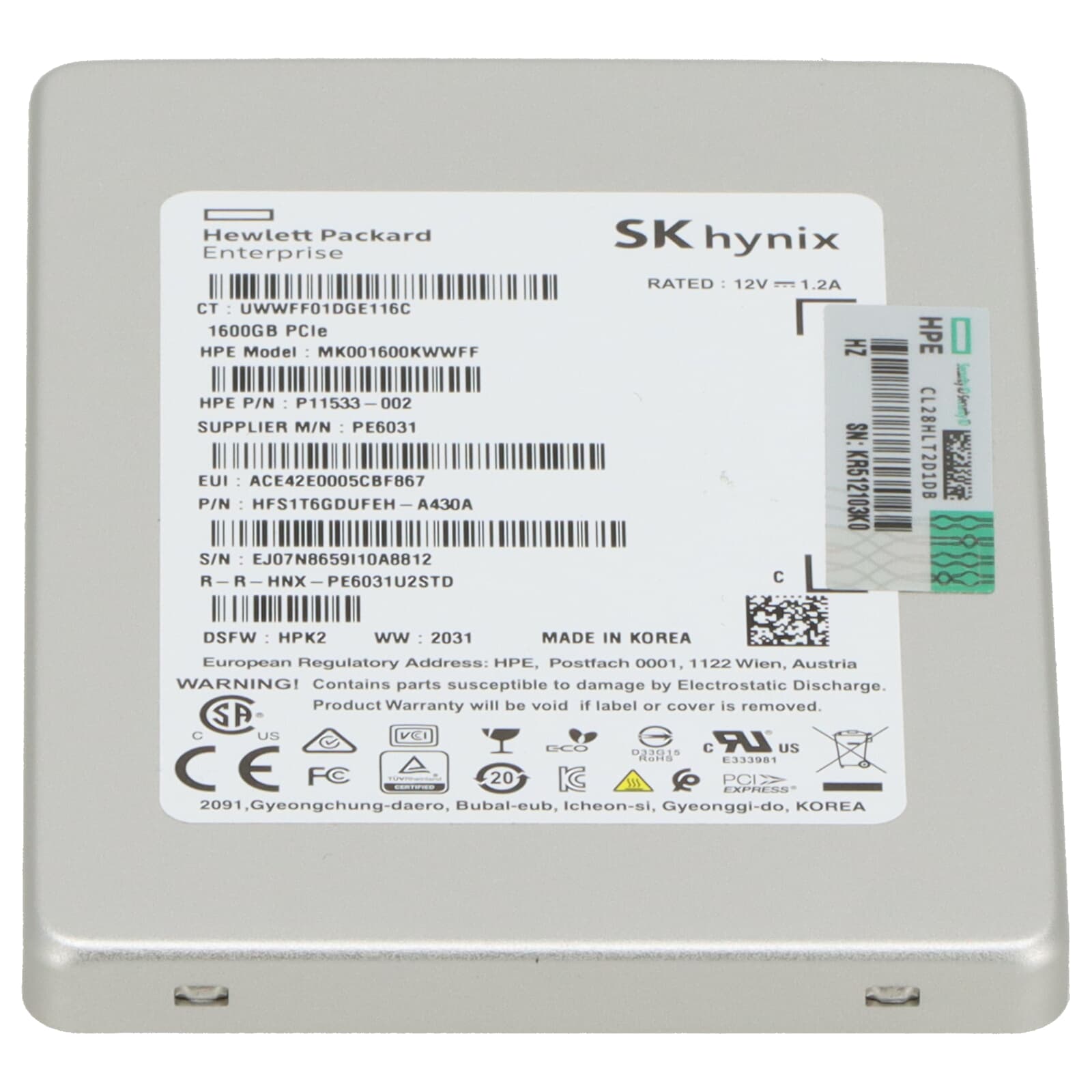 HPE PE6031 1,6TB PCIe 3.0 x4 2,5" NVMe SSD - P11533-002 MK001600KWWFF