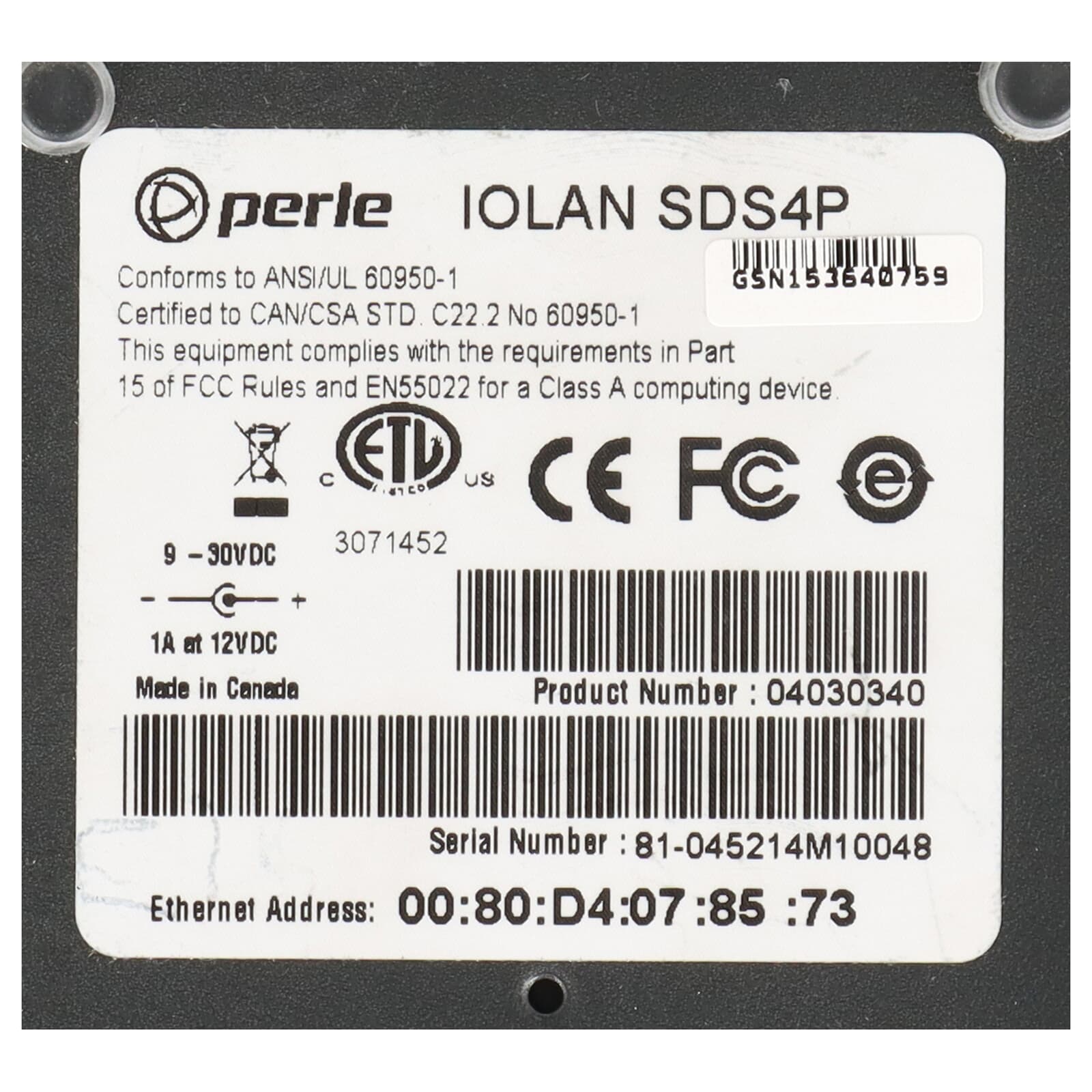 Perle IOLAN SDS4 P Secure Device Server 4x RS232 RJ45 PoE excl. PSU - 04030340