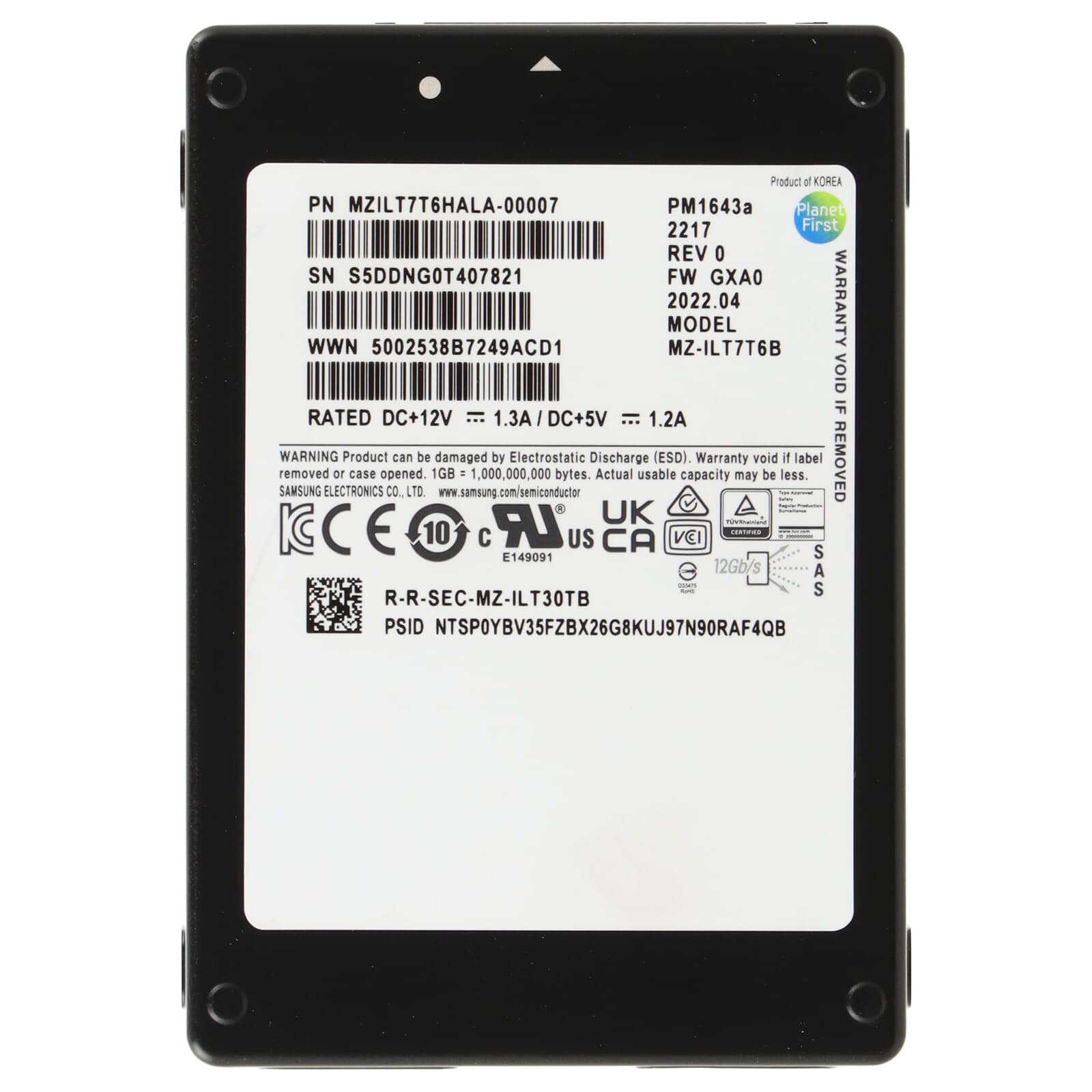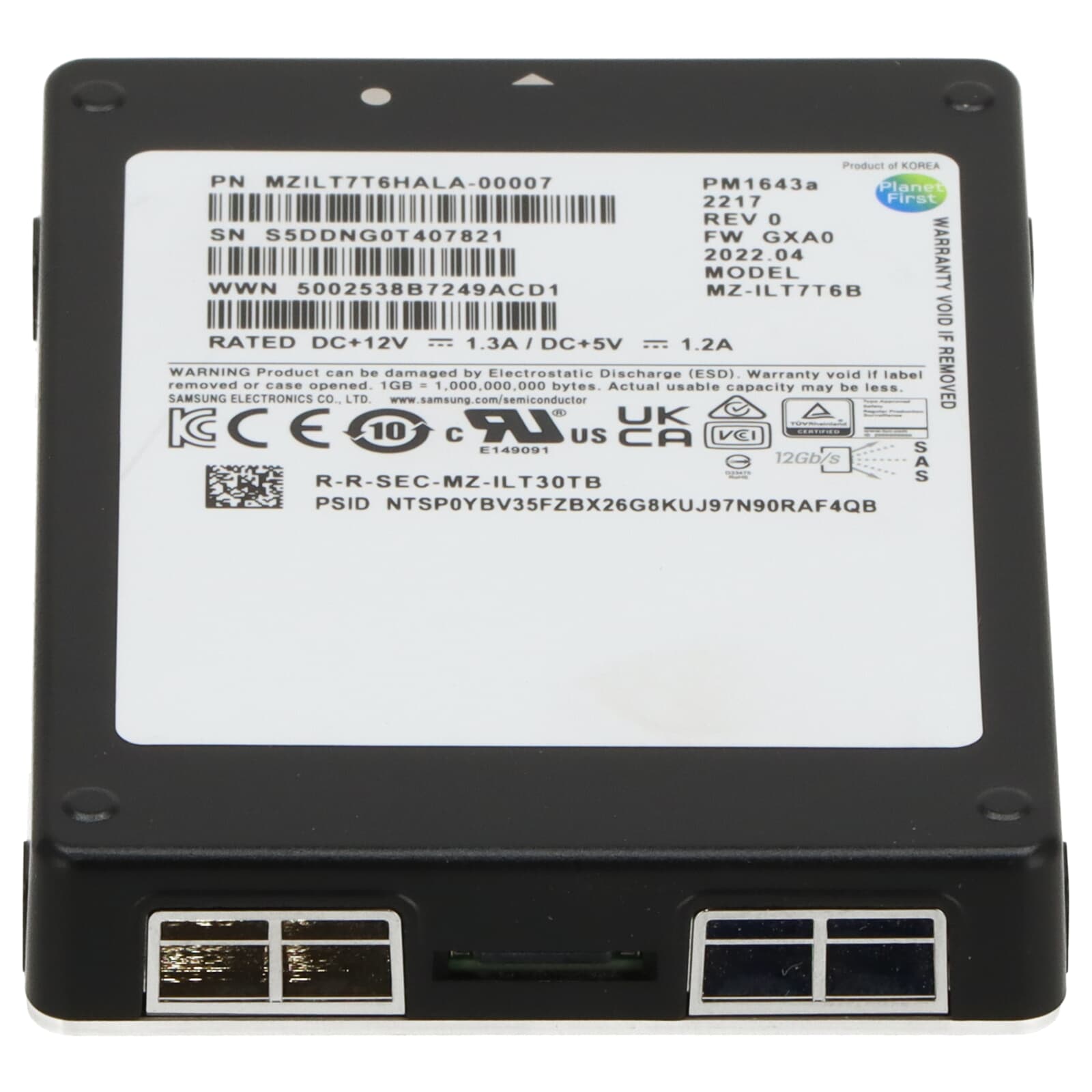 Samsung PM1643a 7,68TB 12G SAS-SSD 2,5" - MZ-ILT7T6B MZILT7T6HALA-00007